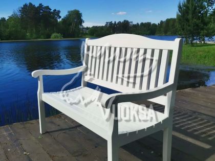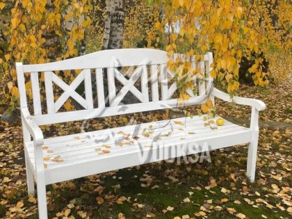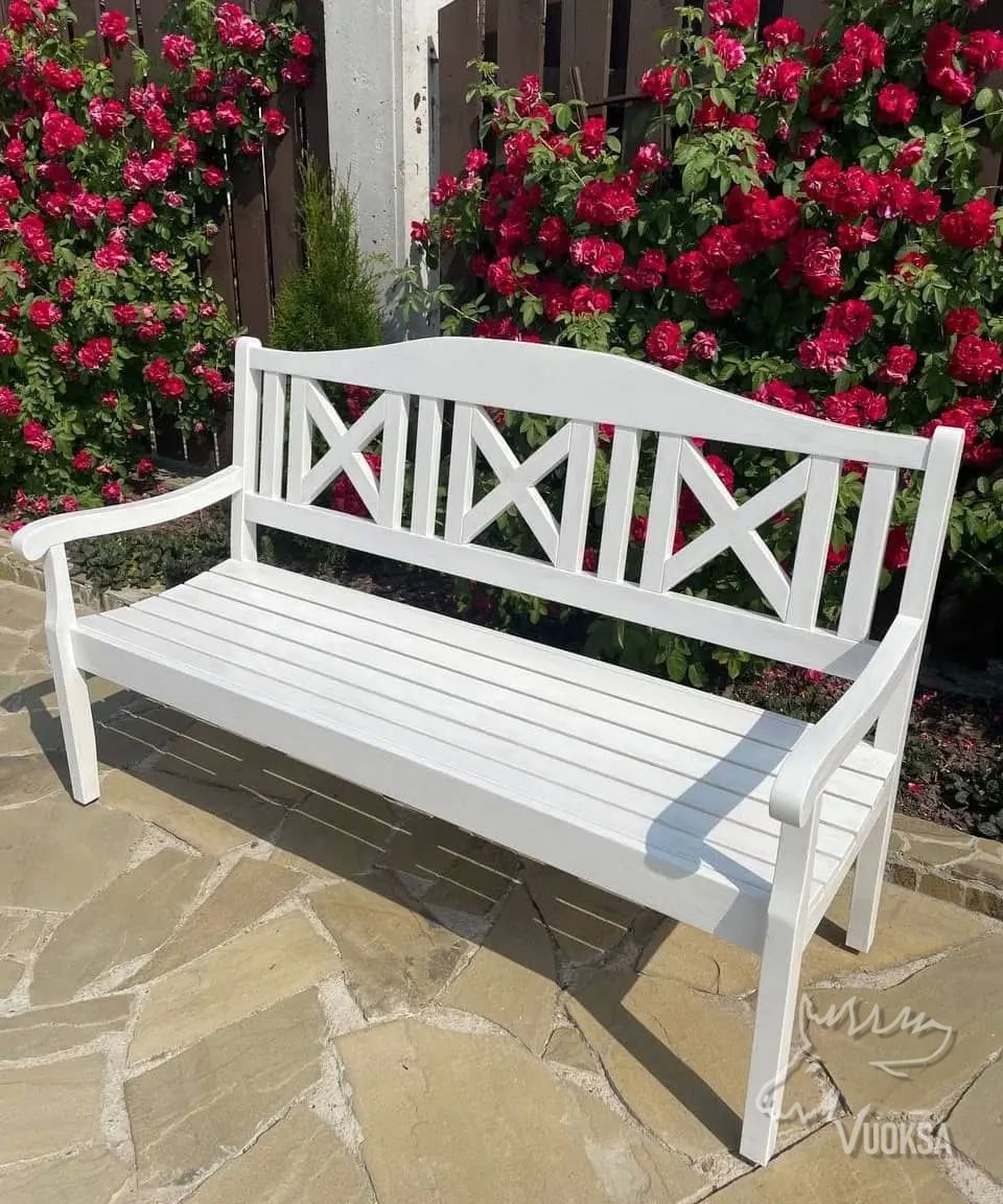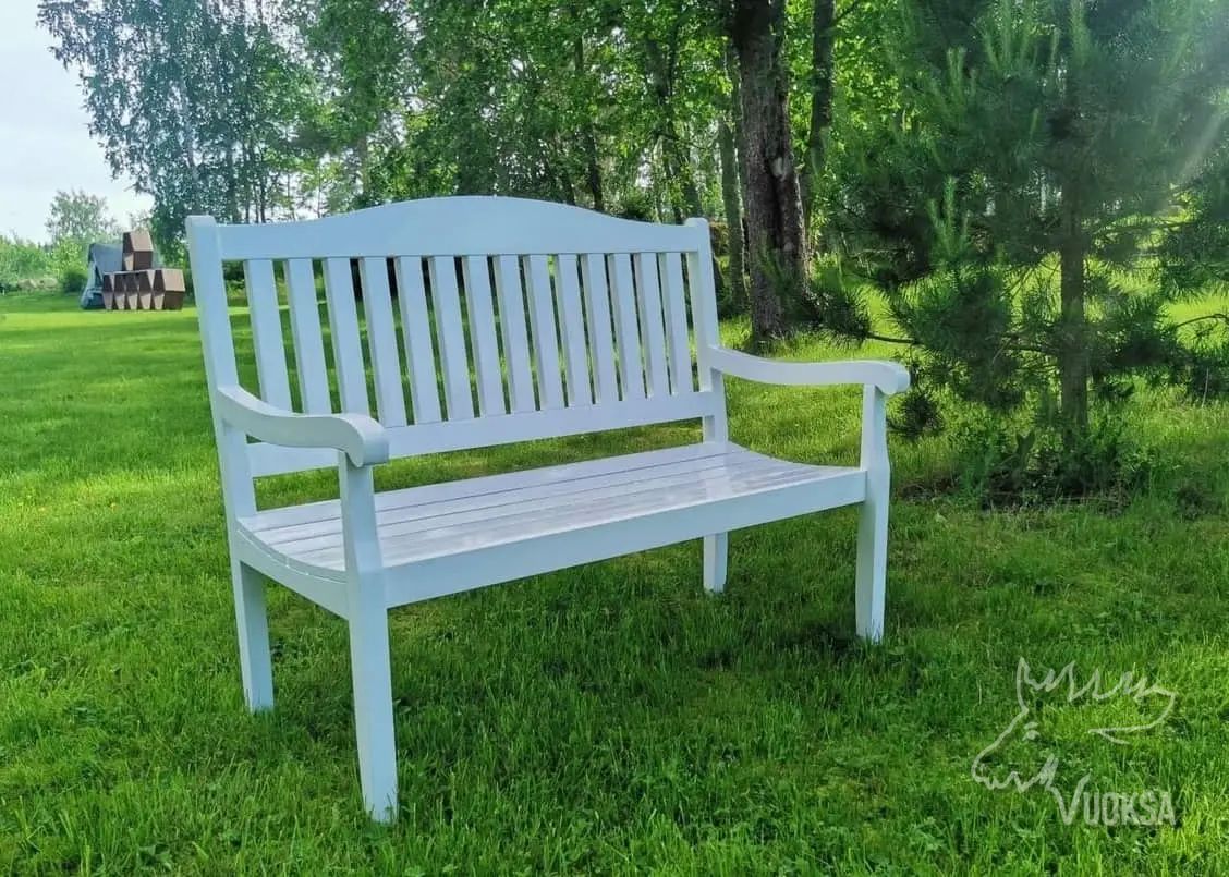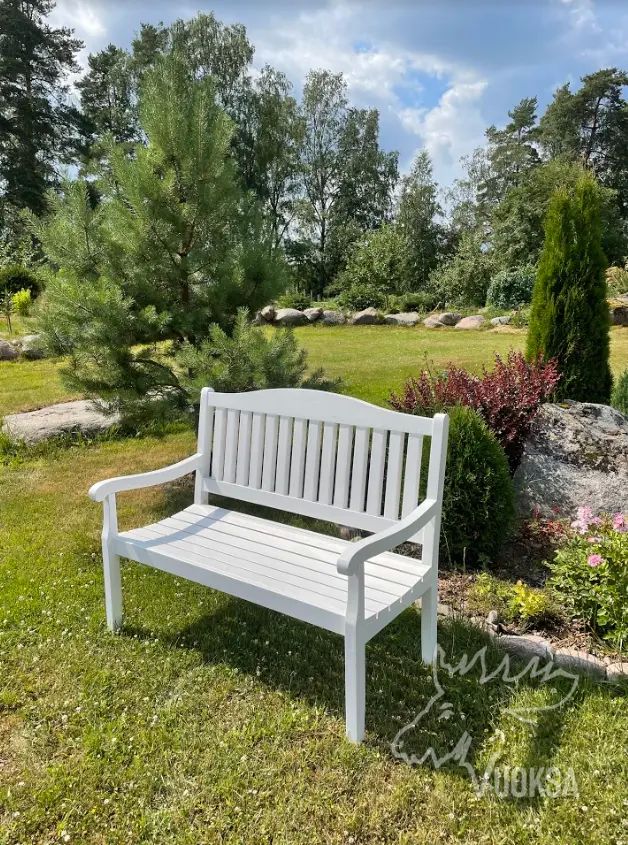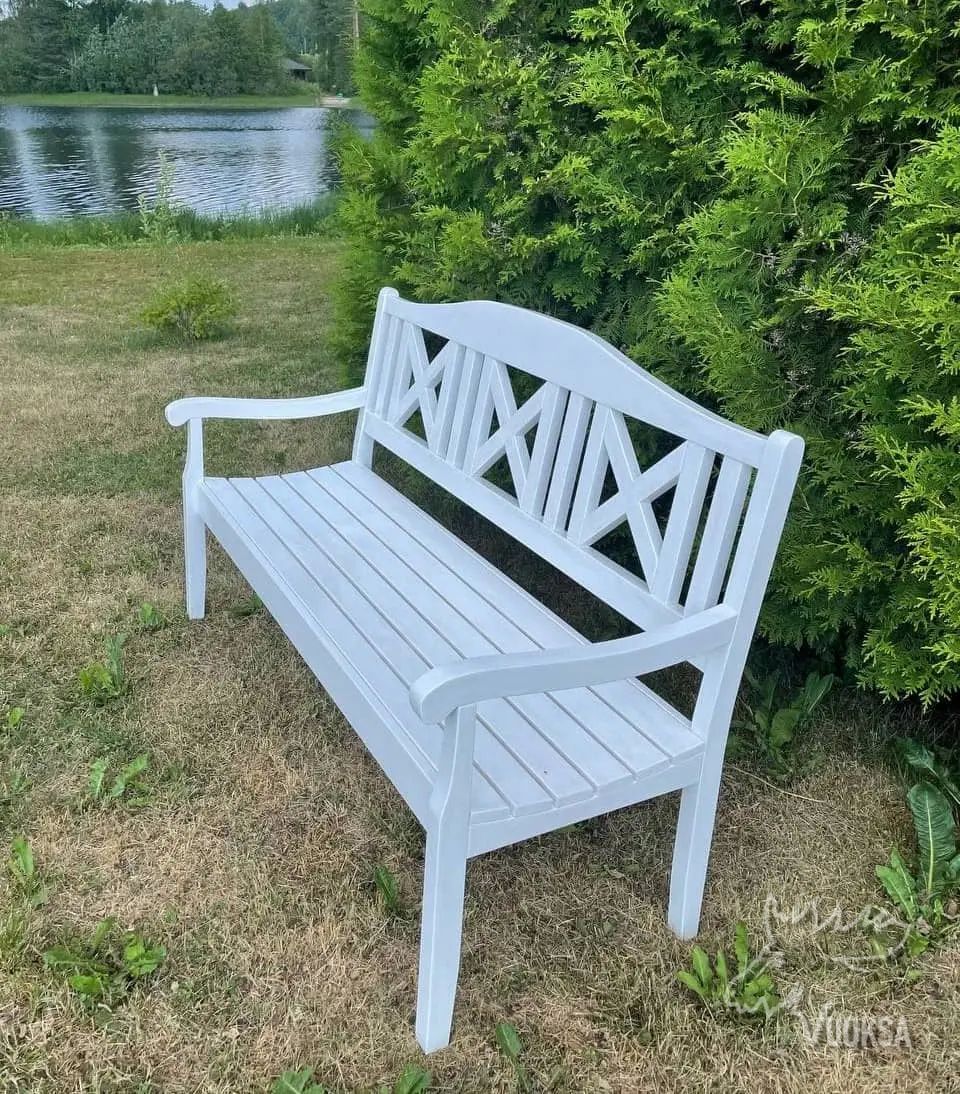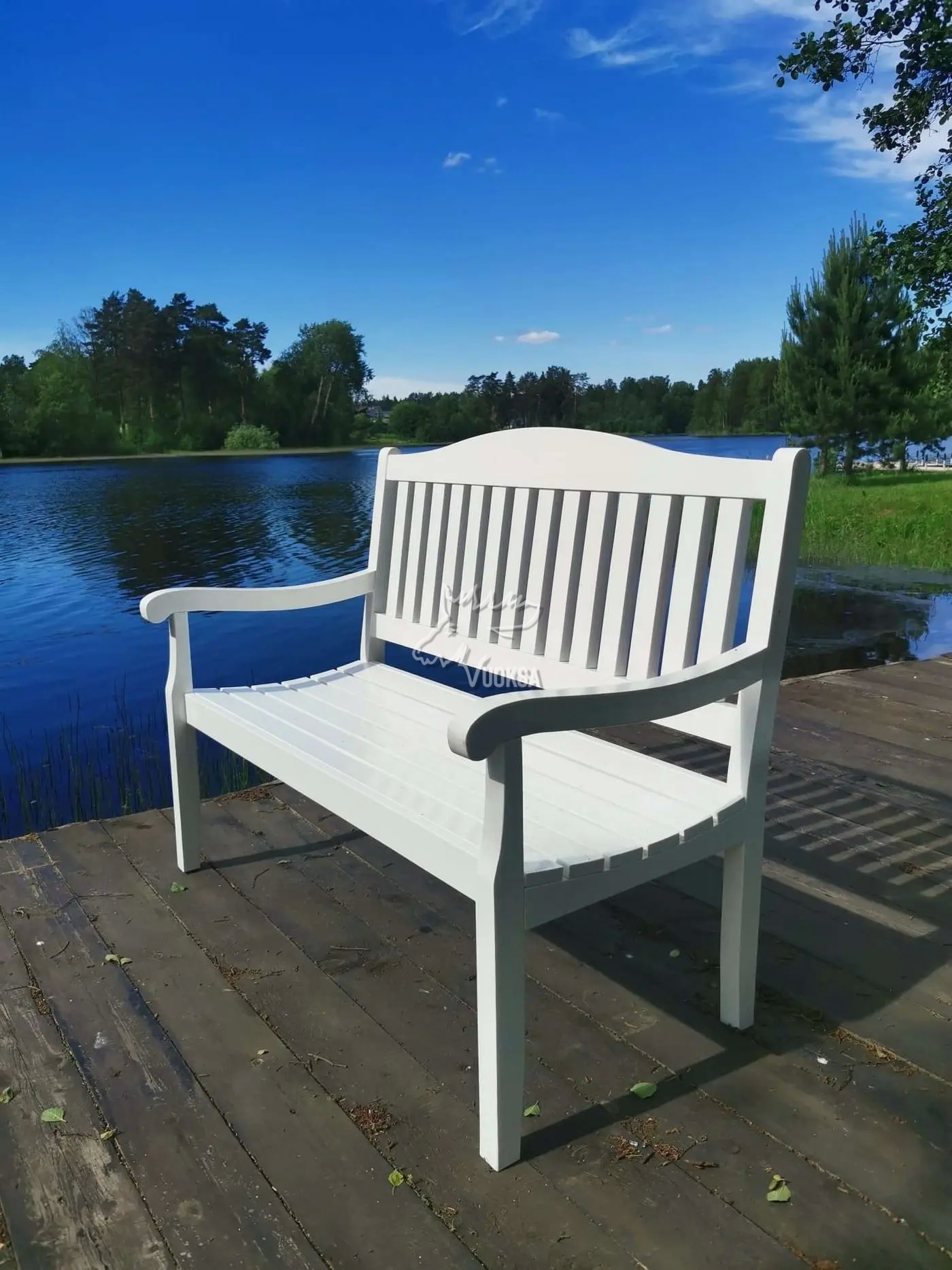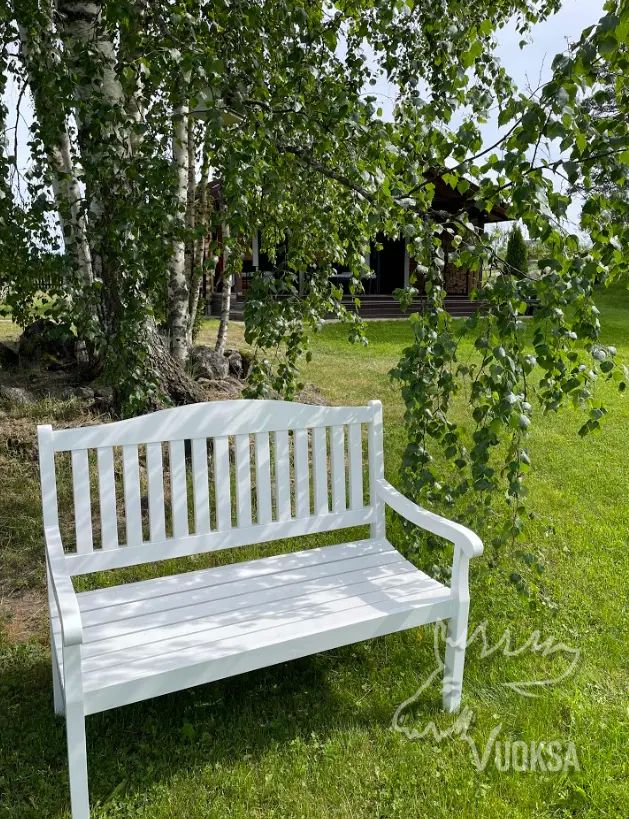 Деревянная скамейка Vuoksa изготовлена из карельской сосны и покрыта стойкими финскими красками белого цвета. Благодаря вручную отобранному массиву и хорошей краске, скамейка не боится плохих погодных условий и солнца. Скамейку можно не убирать на зиму. Отлично подойдёт как для интерьера, так и экстерьера.