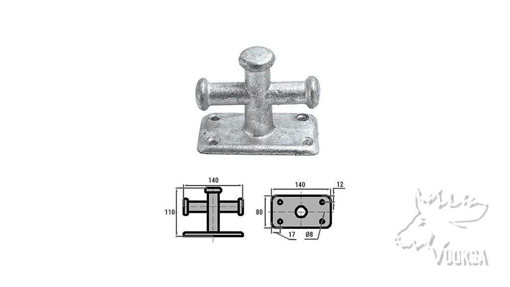 Причальный швартовой кнехт может быть установлен на различные типы поверхности (бетонные, деревянные, металлические). Походит для швартовки малогабаритных и среднегабаритных судов, таких как яхты, катера, лодки различных типов, гидроциклы водоизмещением 2-4 тонны