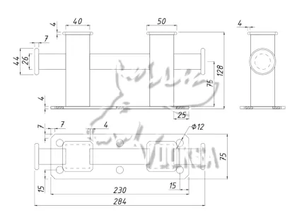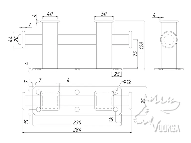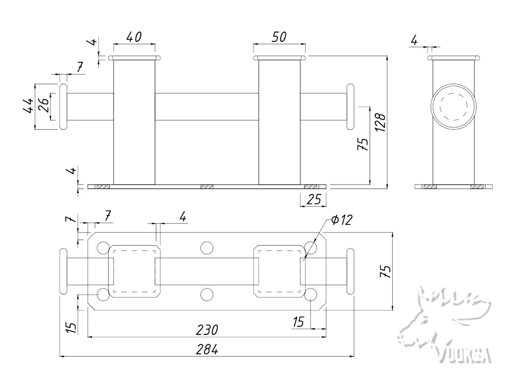 Кнехт "Вуокса пирс" швартовый двойной квадрат усиленный из стали 284x75х128 мм