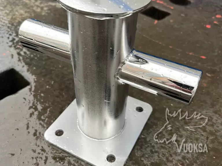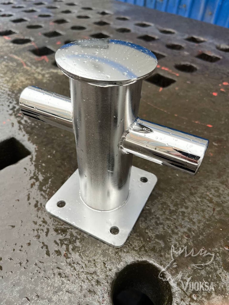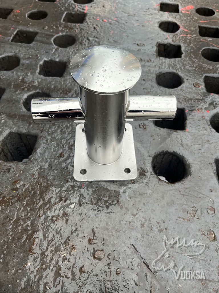 Кнехт сварной из нержавеющей стали, полированный. Изделие отличается высокой прочностью и устойчивостью к воздействиям внешней среды, в том числе к коррозии. Легкие стальные кнехты подходят для установки на палубах и на причалах. Данная модель предназначена для закрепления канатами малых судов: лодок, каяков, гидроциклов и т.д.