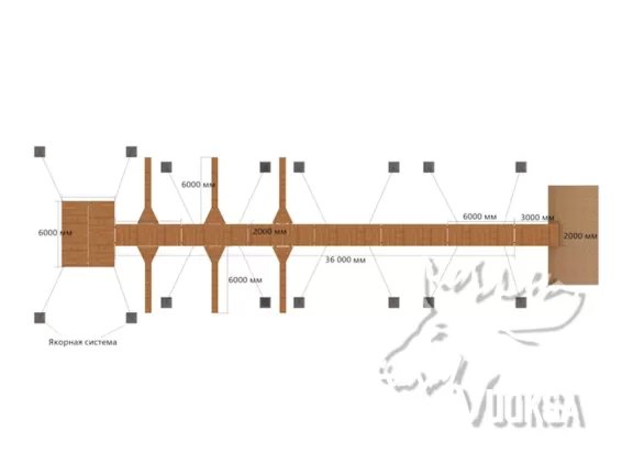 Пирс 36м и пальцы 6шт 6x0,6м и якорь 8шт