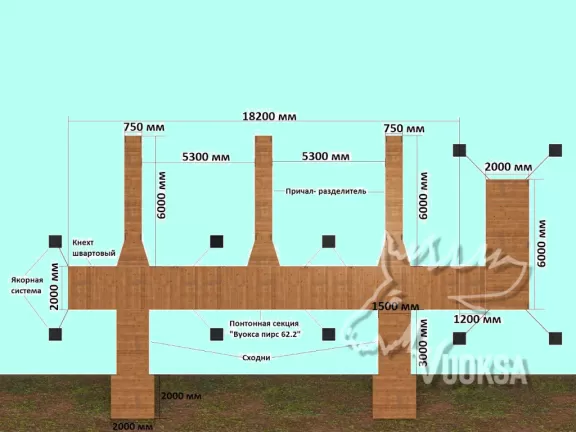 Пирс 18,2x2м сходни 3x1,5м 2шт разделитель 6x0.75м 3шт