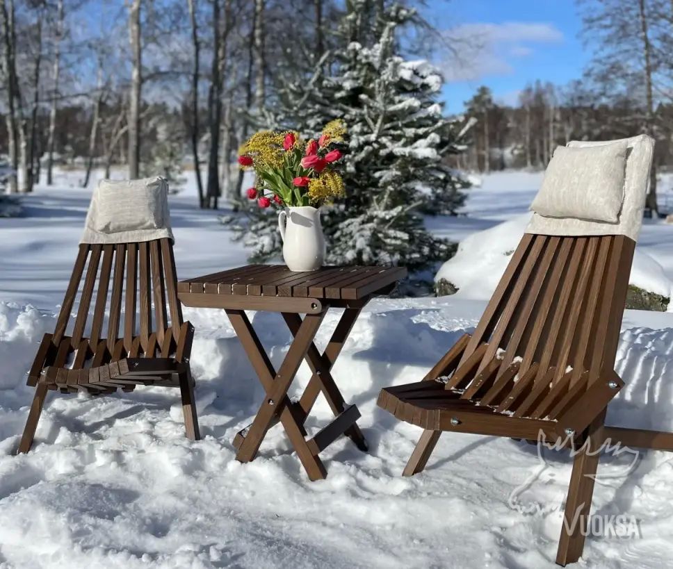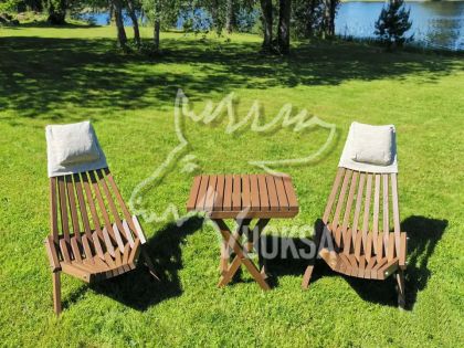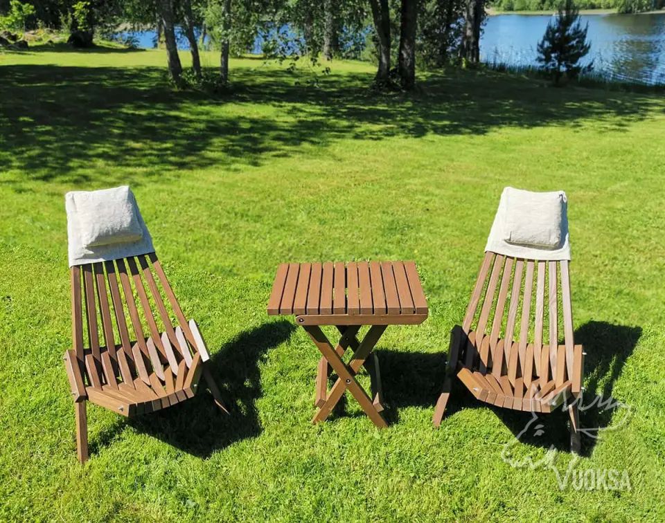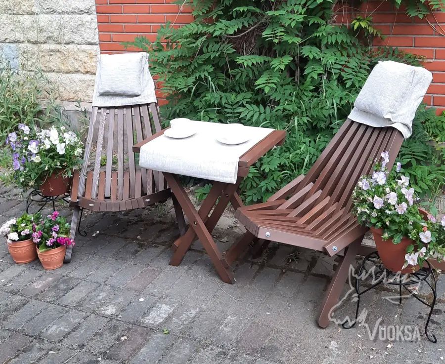 Садовая мебель VUOKSA-WOOD "Релакс", состоит из 2 деревянных кресел и столика. Такой набор мебели прекрасно подойдет для дачи, веранды и террасы, зоны патио и беседки.