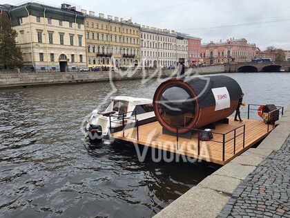 Для съемок нашей компанией была специально создана плавучая баня, которая полностью соответствует идеям режиссера. Она имеет необычный дизайн, сочетающий в себе элементы старинных русских бань и современных технологий. Баня оборудована всем необходимым для комфортного отдыха и съемок: просторными парилками, бассейном, открытой террасой с видом на Неву и даже специальным местом для съемочной группы.