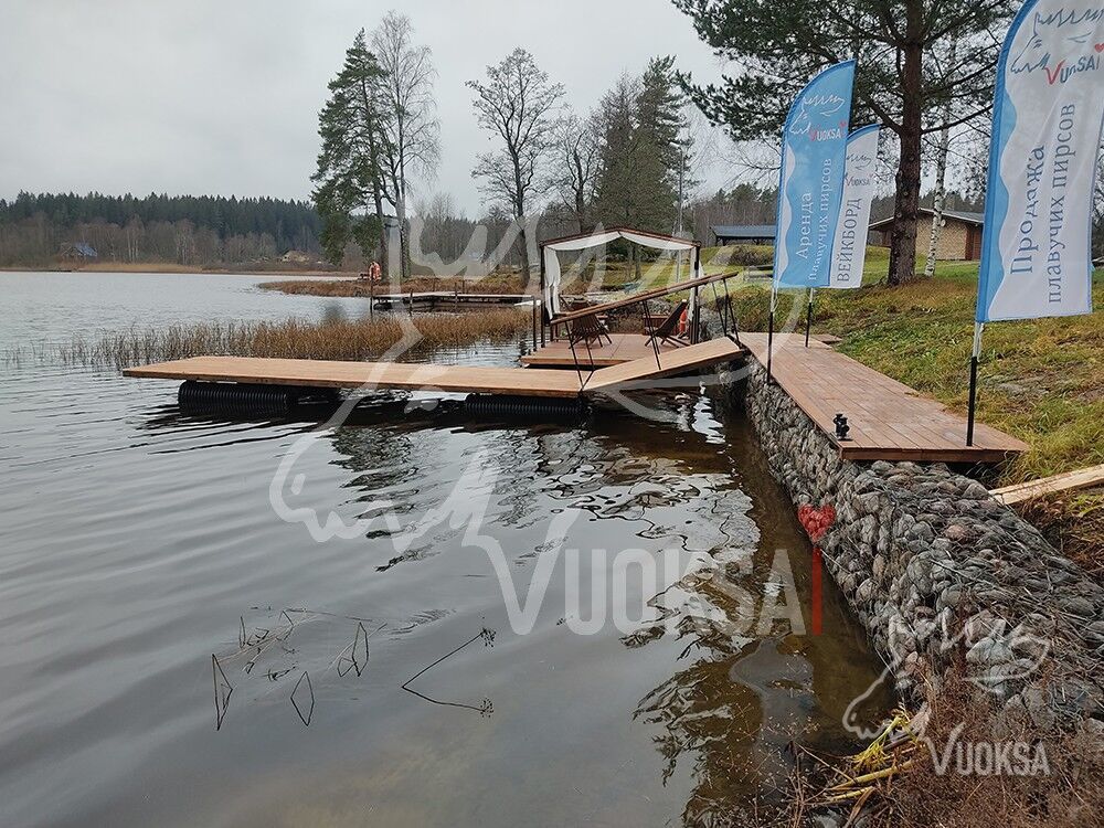 Компания «Вуокса Пирс» проектирует, изготавливает и реализует плавучие пирсы различных конфигураций по всей России. При производстве мы используем материалы и технологии, соответствующие всем необходимым ГОСТам. Каждый из этапов подвергается строгому контролю, а сами изделия — дополнительным проверке и испытаниям. Все плавучие конструкции соответствуют требованиям системы менеджмента качества ГОСТ Р ИСО 9001-2015 и системы экологического менеджмента ГОСТ Р ИСО 14001-2016. При проектировании плавучей конструкции на понтонах мы всегда можем подстроиться под ценовую политику практически любого клиента. Работая давно в этой сфере, у нас появилось огромное количество партнеров по поставке любых видов материалов, в том числе и производственных площадок. По вашему желанию мы можем спроектировать и изготовить пирс любого размера и дизайна.
