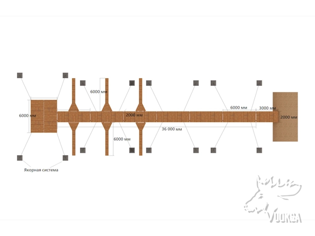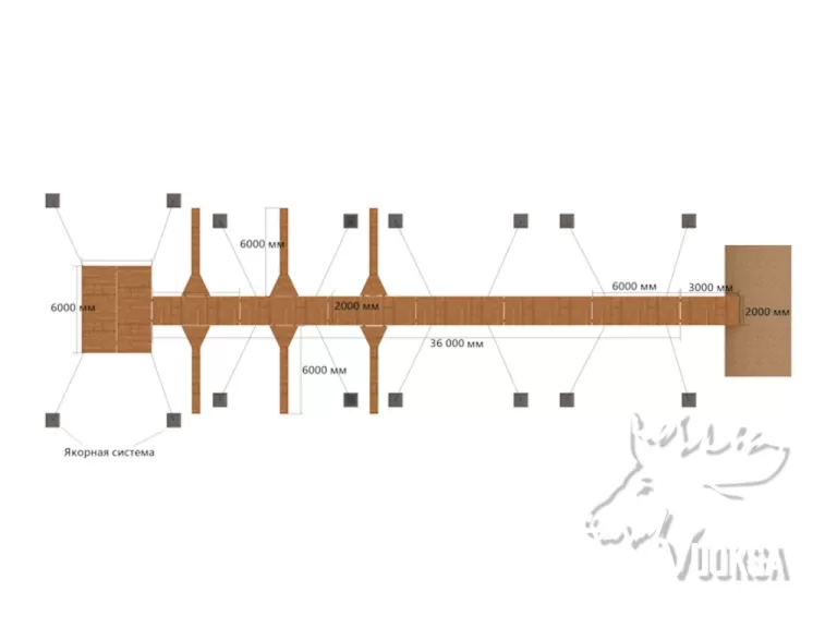 Пирс 36м и пальцы 6шт 6x0,6м и якорь 8шт