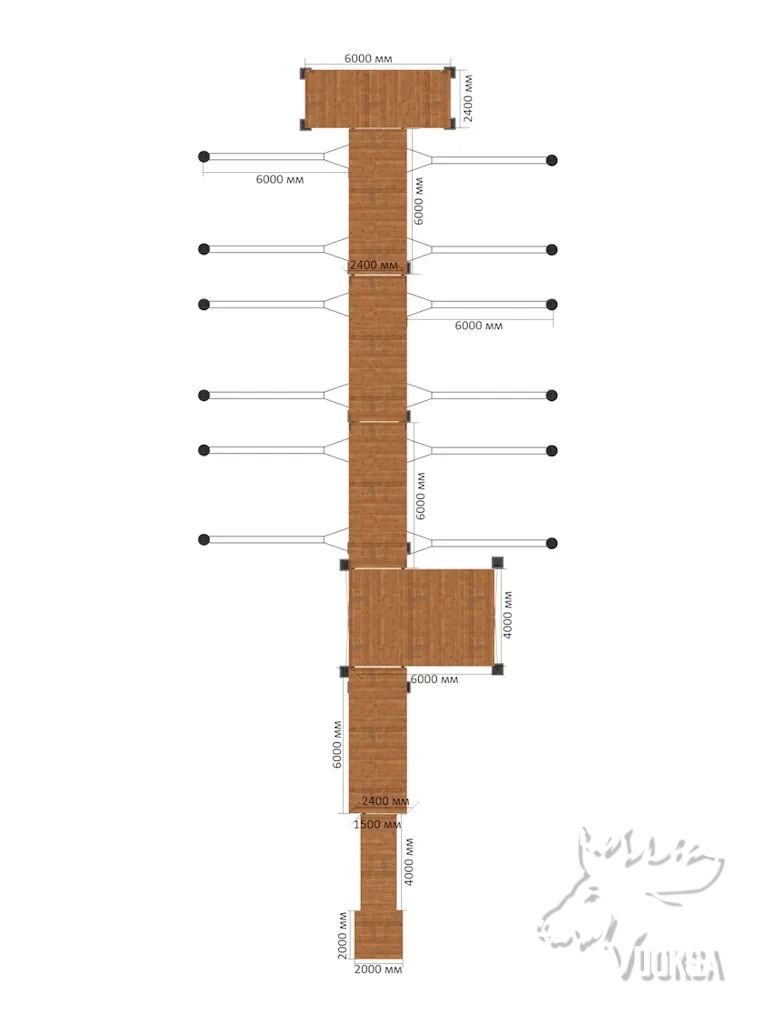 | Габариты ДхШхВ (мм) | 6000*4000*730 6000*2400*730 (5 шт.) 4000*1500 (сходни) 6000*300 (балка-разделитель - 12 шт.) 2000*2000 (террасная тумба) |