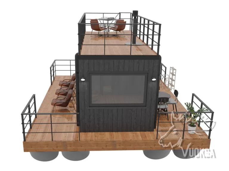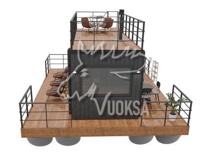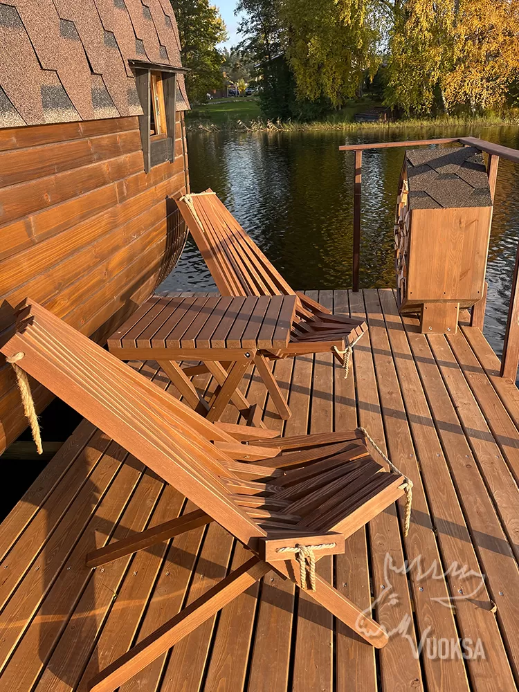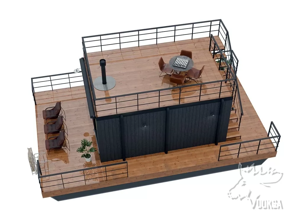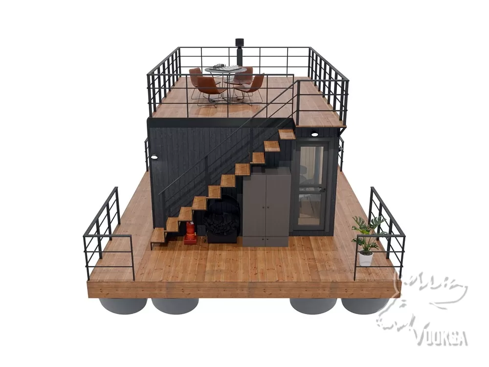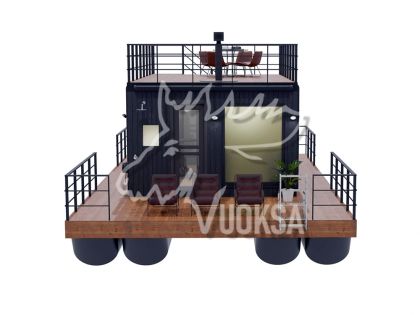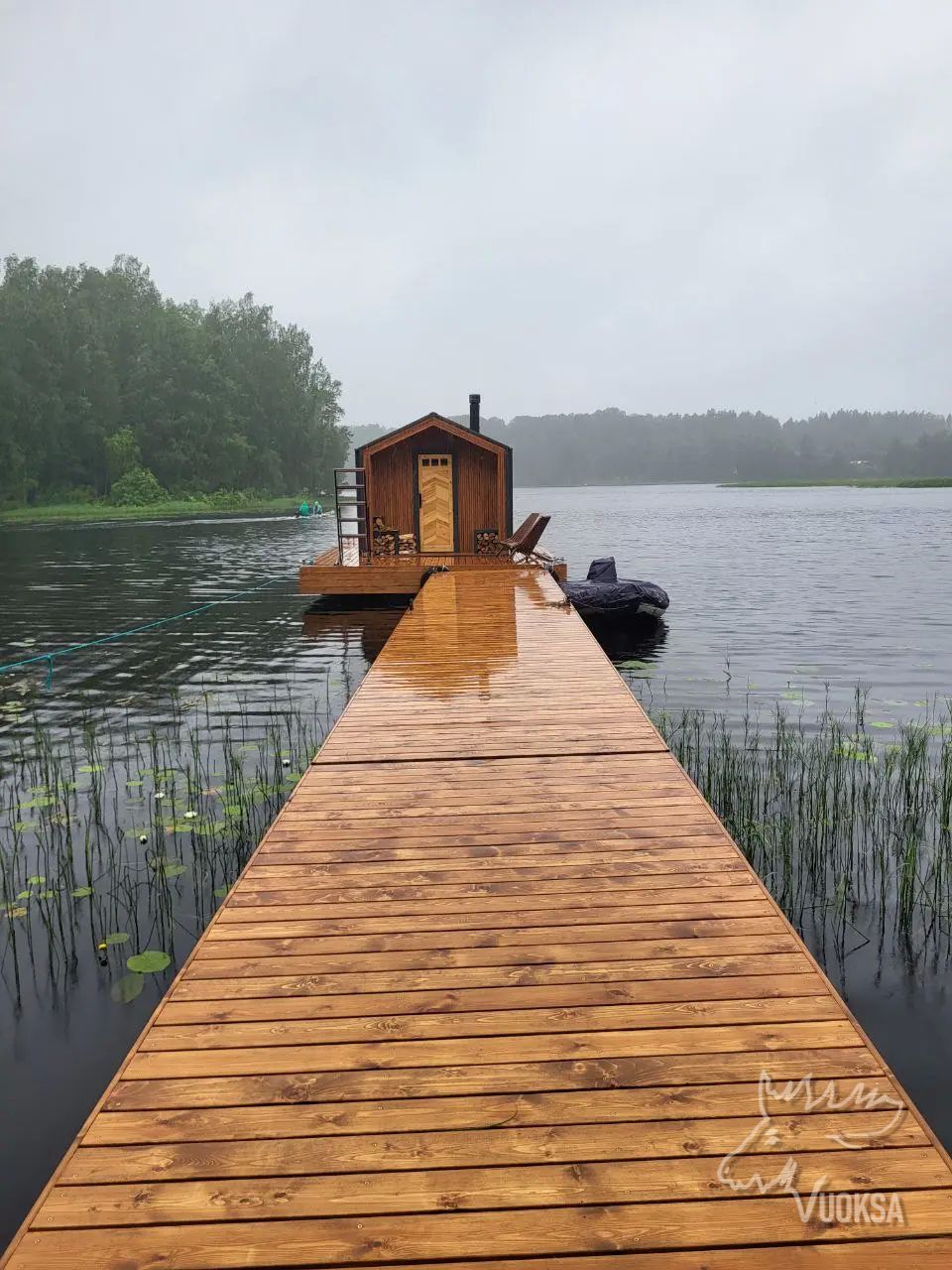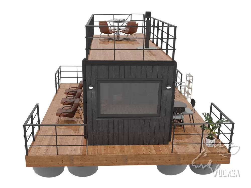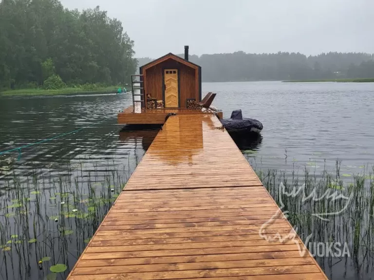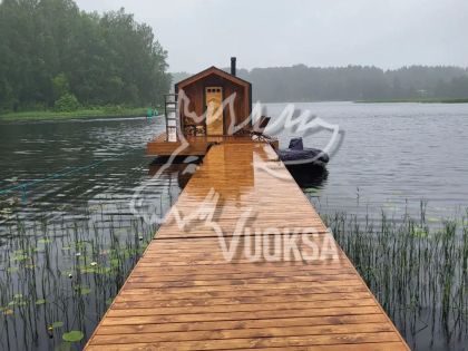 За основу мы берём трубные пластиковые понтоны, на которые устанавливаем каркас из стали, что придаёт конструкции жёсткость, необходимую для эксплуатации на воде, и качественной импрегнированной древесины, которая устойчива к любым погодным условиям. Далее, в зависимости от пожеланий клиента, мы устанавливаем на пирс баню бочку в заранее обговорённой комплектации, материала и укомплектовываем набором нашей фирменной мебели. Важно понимать, что заказывая у нас индивидуальный проект вы можете рассчитывать на самое трепетное отношение к вашим желаниям. Мы можем установить зону барбекю, освещение, лодочный мотор и многое другое.