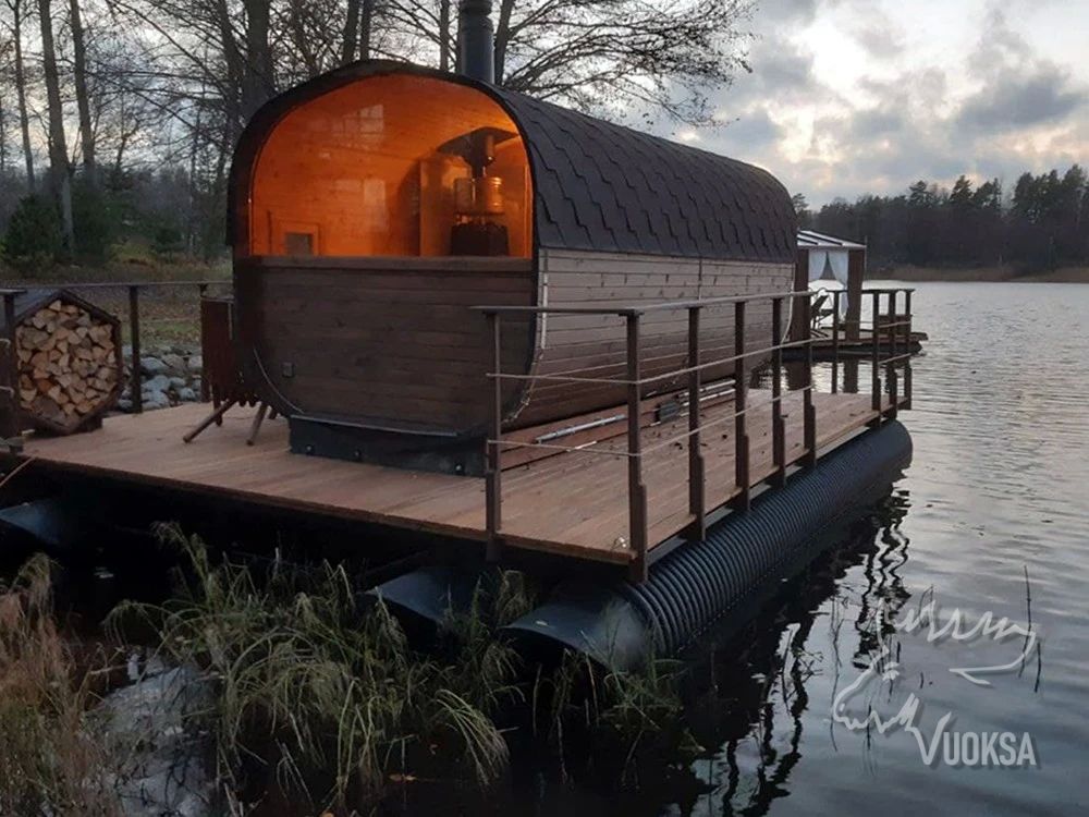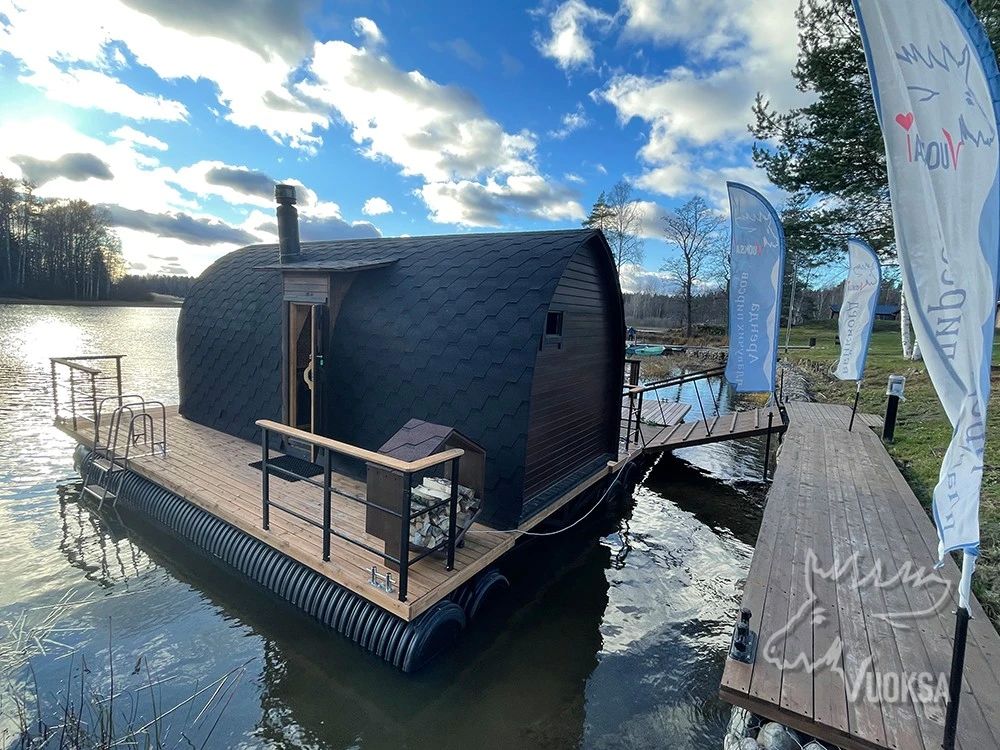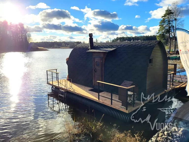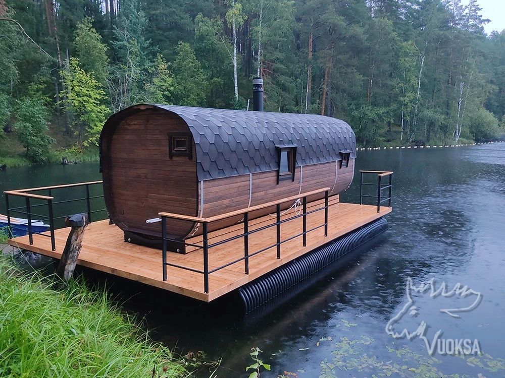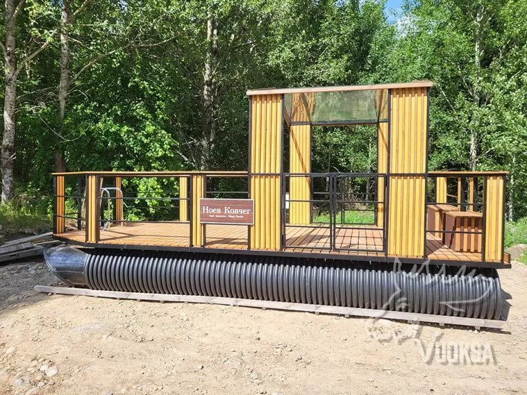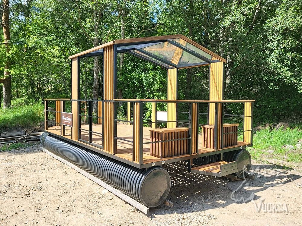 Понтоны не вмерзают в лед, поэтому на зиму баню не нужно вытаскивать на берег