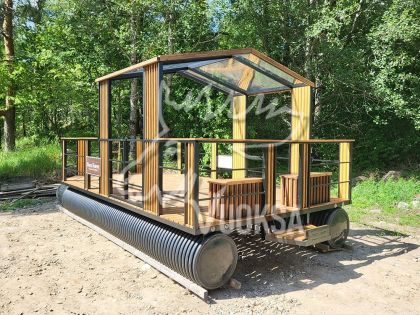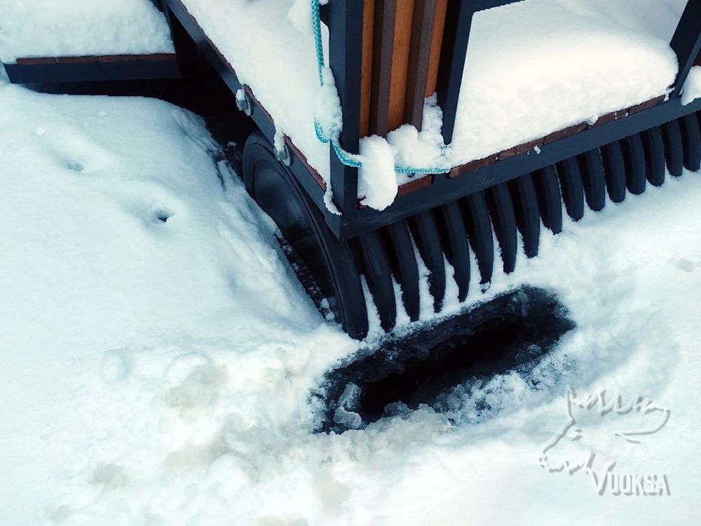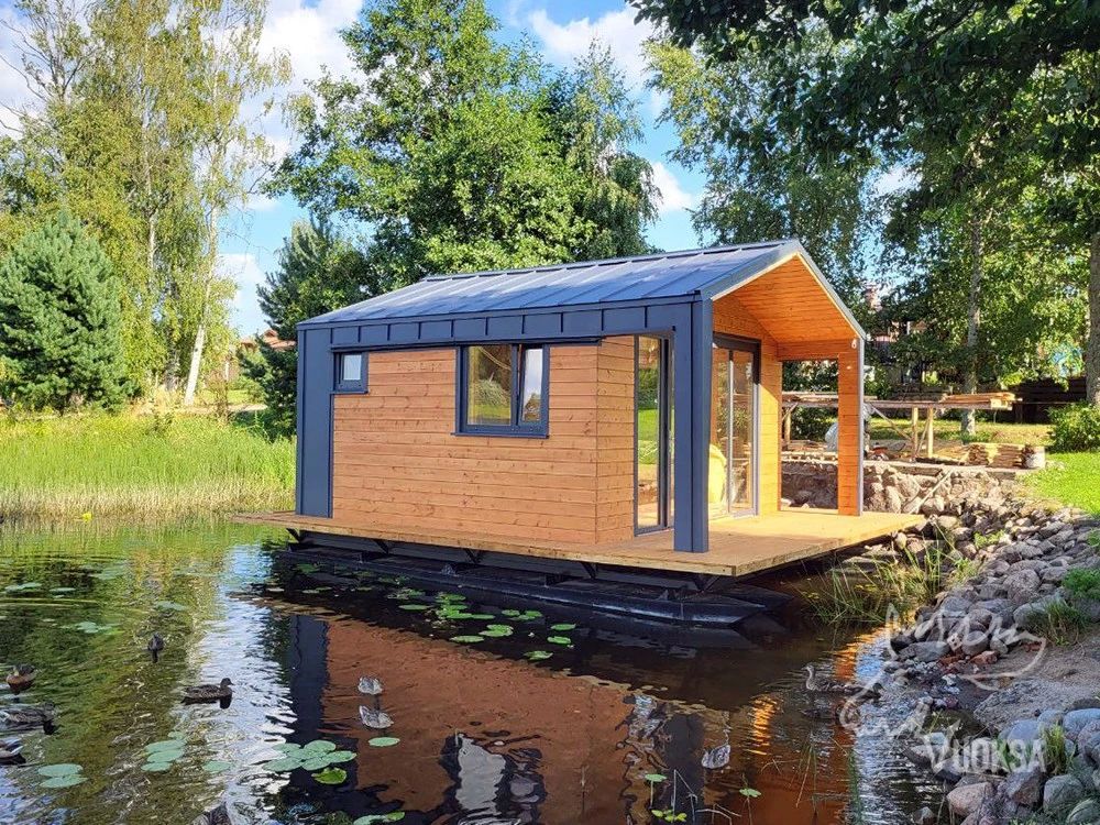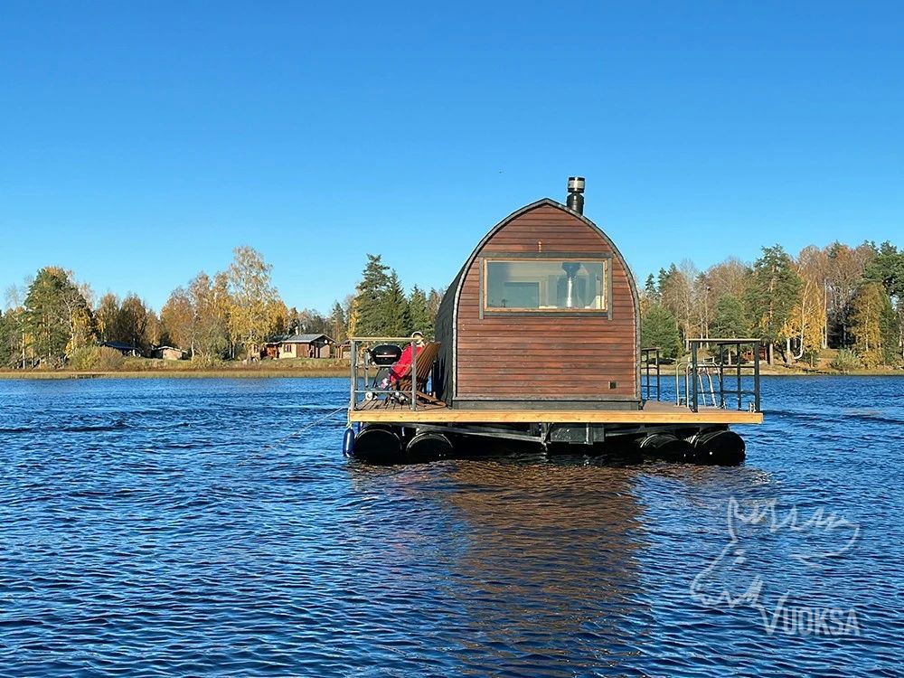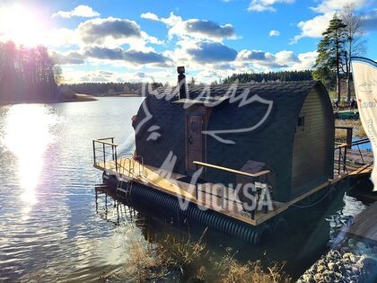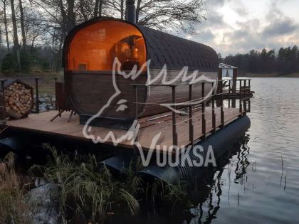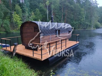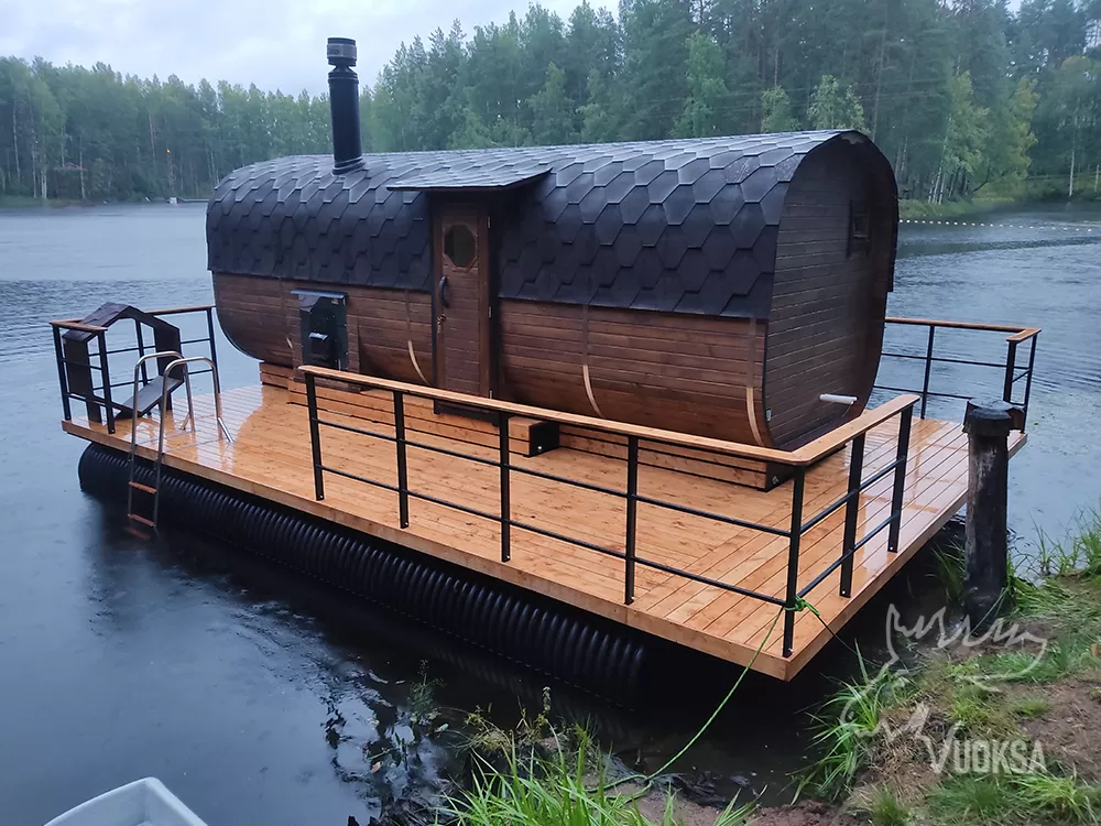 Понтоны не вмерзают в лед, поэтому на зиму баню не нужно вытаскивать на берег