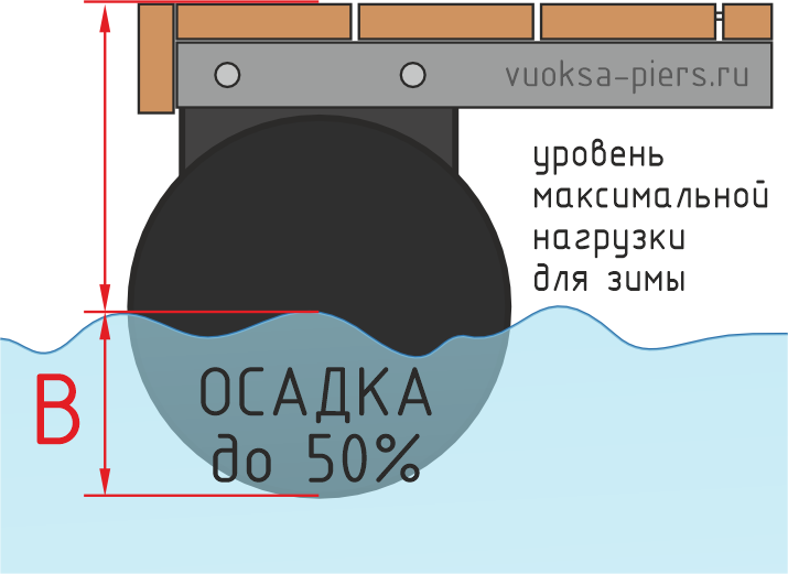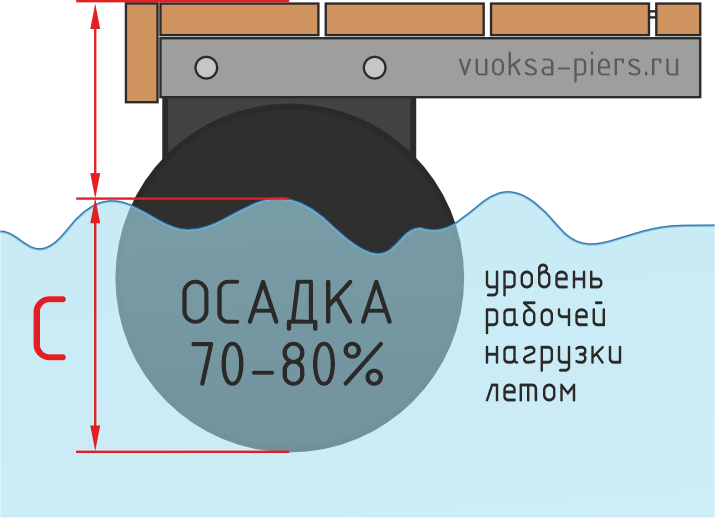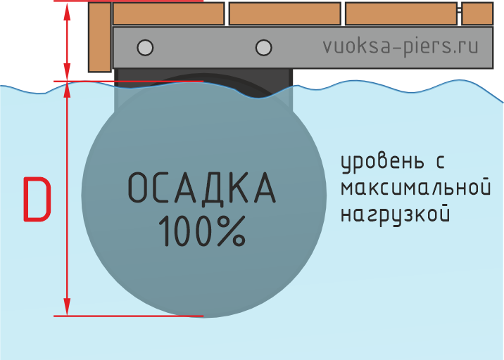 Учтите, что этот метод расчета осадки является упрощенным и может не учитывать другие факторы, такие как форма и размеры понтона, воздействие ветра и течений, может изменятся в зависимости от характеристики воды (морская, речная, карьерная, вода угольных разрезов и пр.)