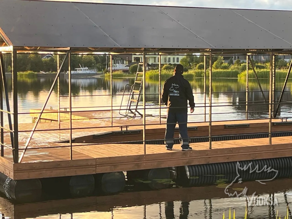 Г-образный плавучий пирс со сходнями озеро Суходольское