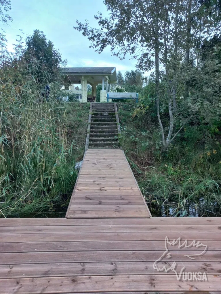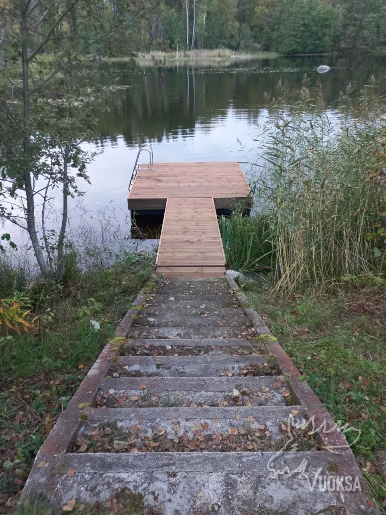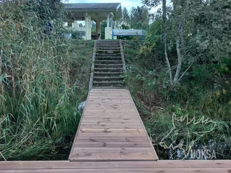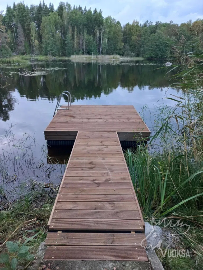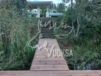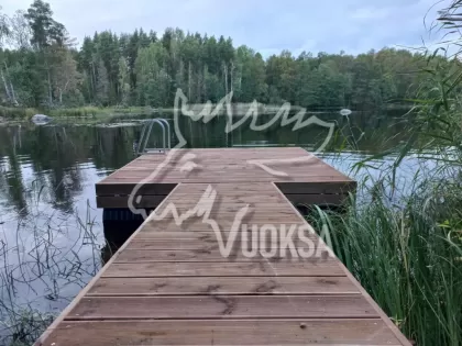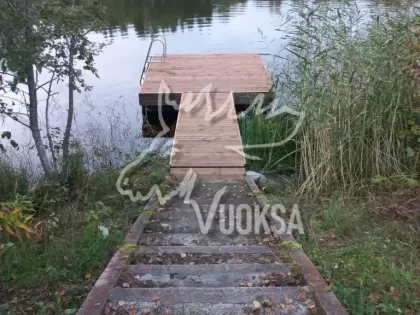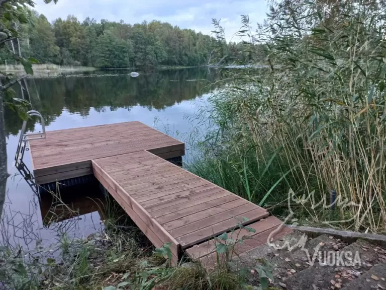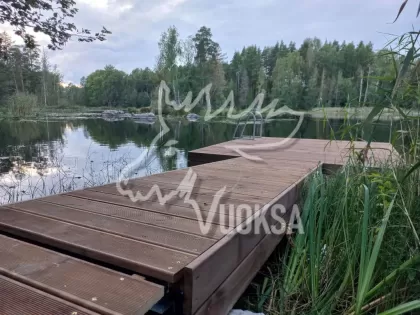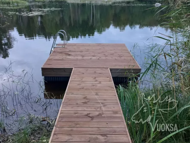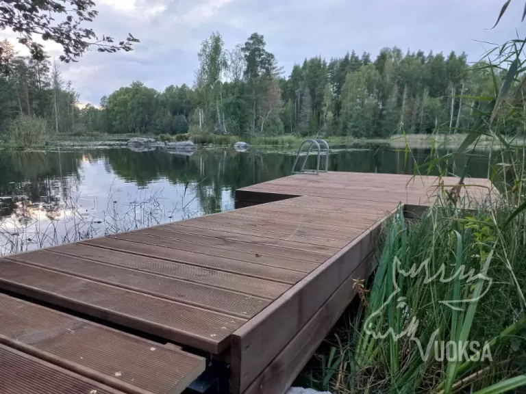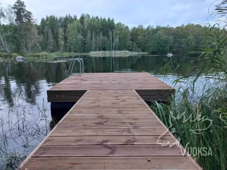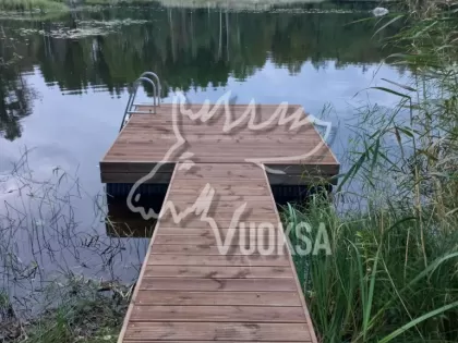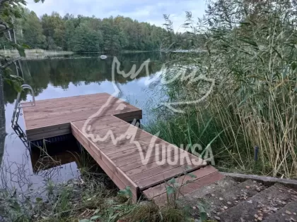 Т-образный пирс с палубным настилом из лиственницы на озере Любимовское