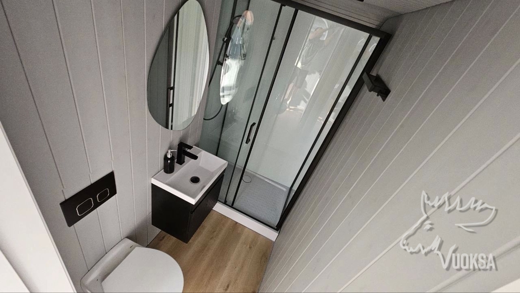 Душевая кабина, инсталляция с унитазом, раковина, зеркало