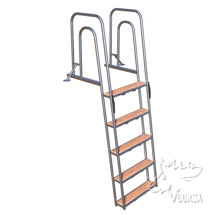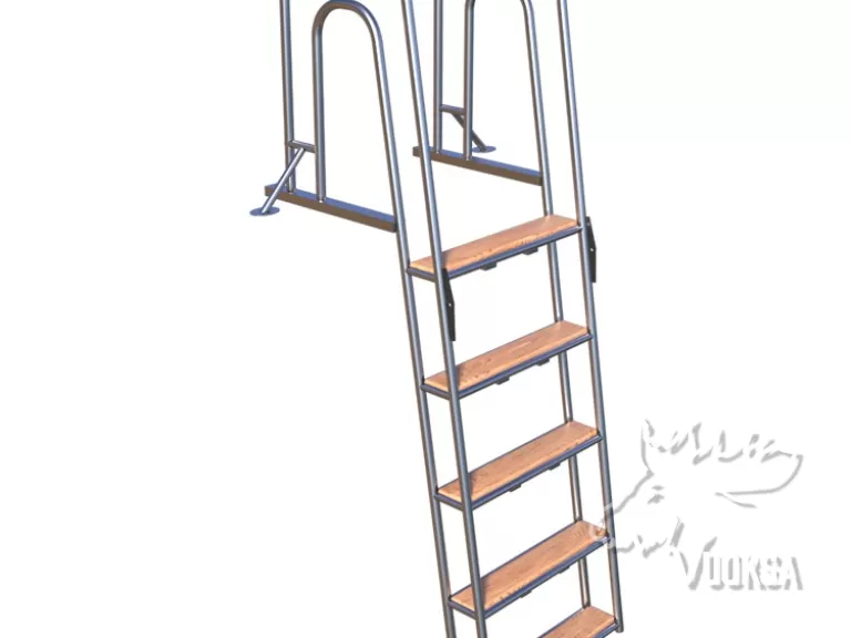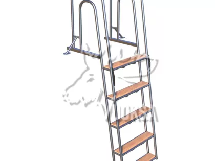 Трап складной предназначен для установки на горизонтальную поверхность причалов и пирсов. Изготовленный из высококачественной нержавеющей стали AISI 304 и древесины ироко, он сочетает в себе долговечность, надёжность и эстетическую привлекательность.
