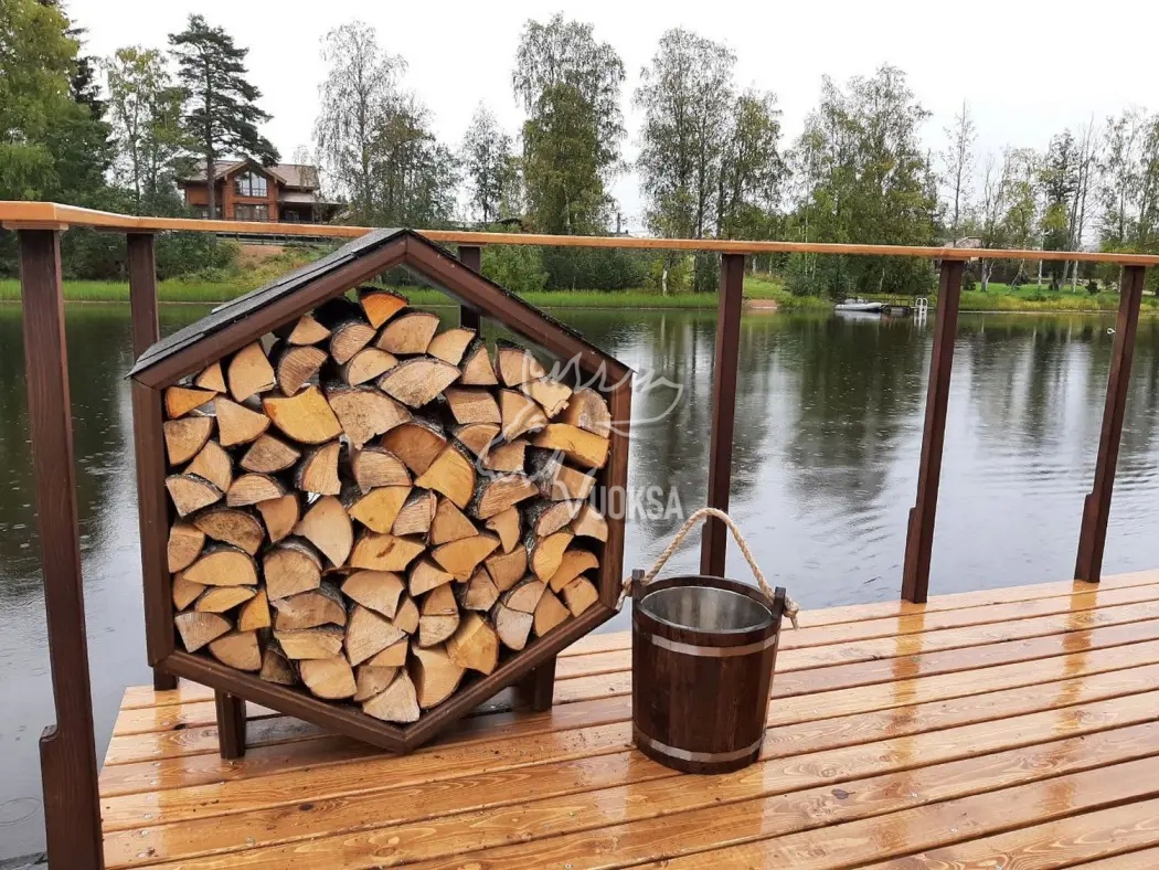 Деревянная дровница VUOKSA-WOOD - это оригинальное решение, предназначенное для удобного и эстетичного хранения дров на улице. Уличная дровница из массива дерева выполнена в виде пчелиных сот из экологически чистого материала, древесины сосны 40-45 мм, что позволяет создать дополнительные условия для хорошей просушки поленьев перед их сжиганием.