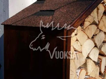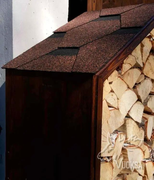 Дровница из натурального дерева может быть оснащена мягкой черепицей для дополнительной защиты от погодных условий.