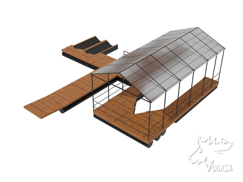 Пирс Т-образный пирс, эллинг с крышей 8х5м и понтоны для гидроциклов 4.2х1.55м