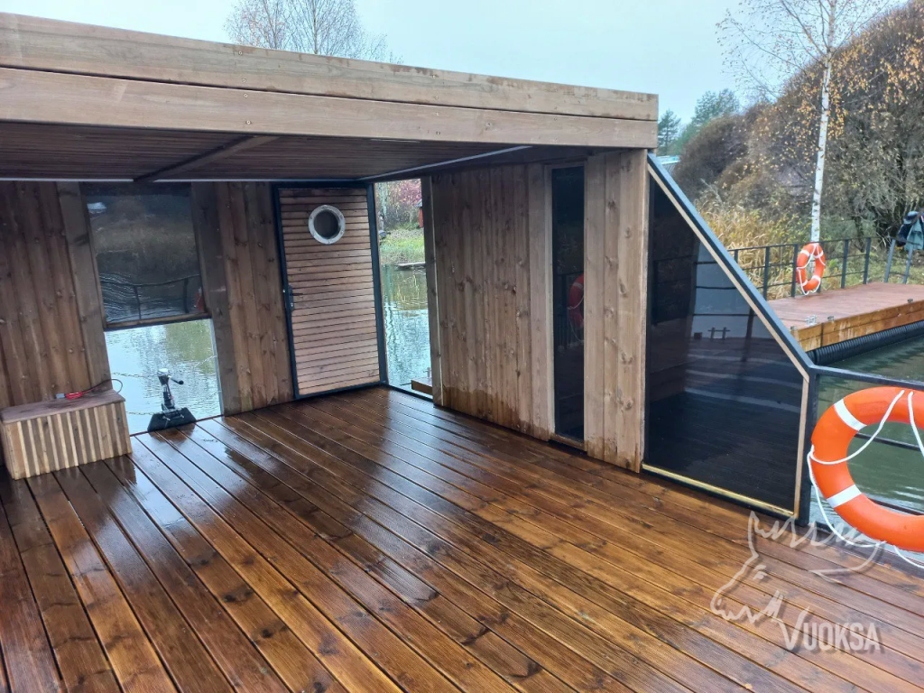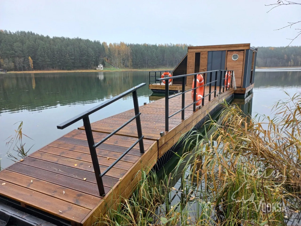 Для ценителей уединения и гармонии с природой мы создали плавучую самоходную беседку с пирсом для швартовки по индивидуальному дизайну. Это настоящий островок комфорта и уюта на воде, где каждая деталь продумана для вашего отдыха.